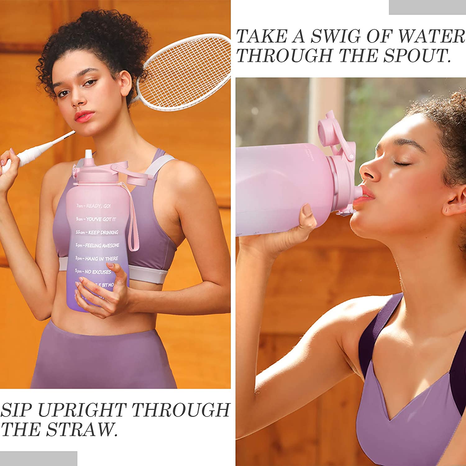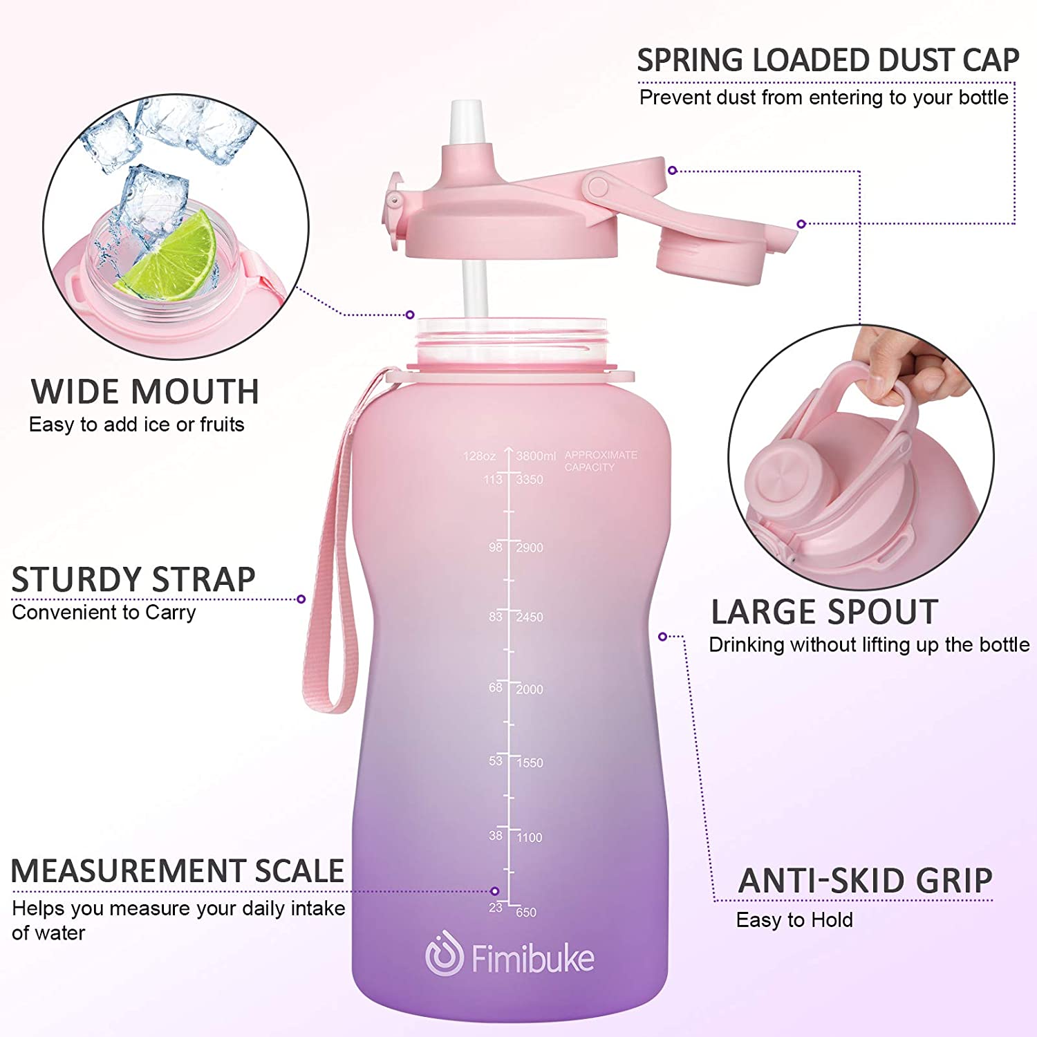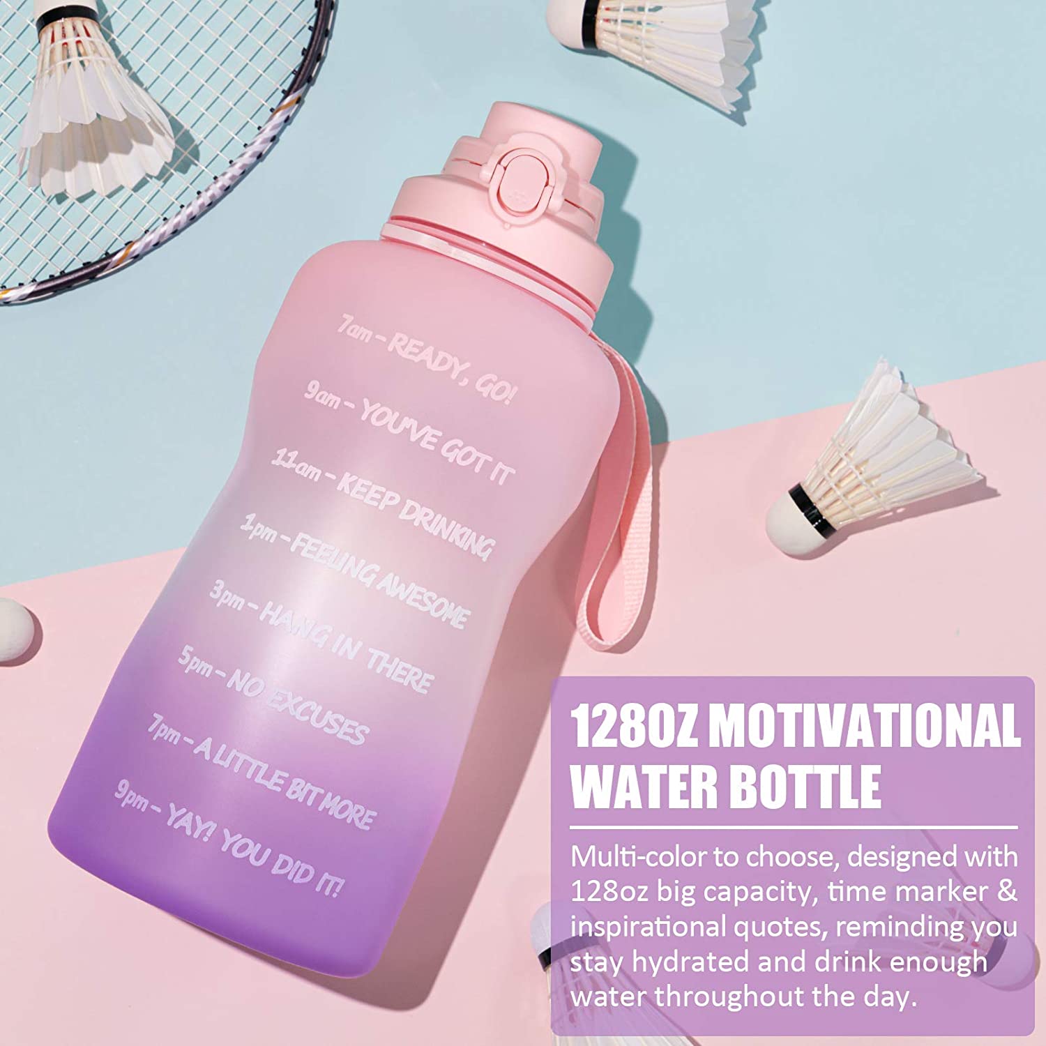 MOTİVASYONEL SU ŞİŞELERİ - DAHA FAZLA İÇMEK İÇİN: Bu galonluk su şişeleri, gün boyunca susuz kalmanızı hatırlatmak için harika alıntılar ve zaman işaretçisi ile tasarlanmıştır. 128 oz su şişeleri, gerçek su miktarını kolayca ve net bir şekilde kontrol etmeye yardımcı olan ölçüm ölçeği ve yarı şeffaf görünüme sahiptir. Bu büyük su şişesi, spor salonunda, açık havada veya ofiste yoğun bir şekilde çalışırken herhangi bir fitness hedefiniz olduğunda içme ihtiyaçlarınızı karşılamanıza yardımcı olur.