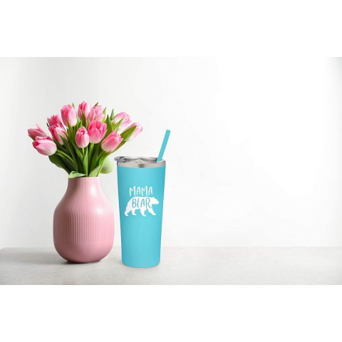 KADINLAR İÇİN MAMA HEDİYELERİ: SassyCups aqua mavi toz boyalı bardakta sürgülü kapak, yeniden kullanılabilir silikon pipet ve üzerinde tatlı "Ayı Anne" ve sevimli ayı yazan kaymaz taban bulunur - MAMA İÇİN FAYDALI HEDİYE: Bu yalıtımlı mom bardak Anneler Günü, doğum günü, Noel, Sevgililer Günü için ideal bir hediye çünkü - 18/8 PASLANMAZ ÇELİK VAKUM İZOLELİ özellikleri seyahat kupalarımızı dayanıklı, paslanmaya karşı dayanıklı ve tüm sabah sıcak içecekleri sıcak tutmak için ideal kılıyor.