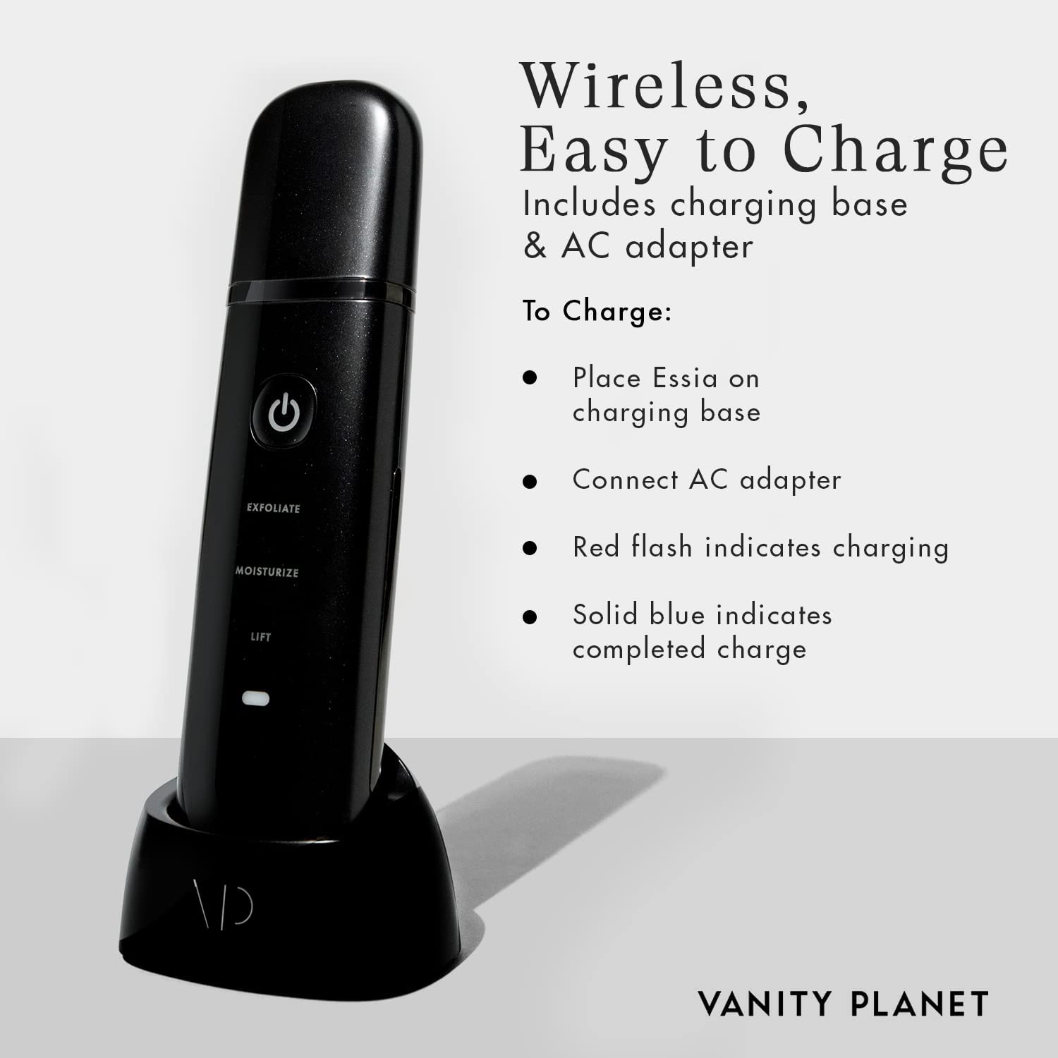 Ultrasonik Cilt Bakımı: Essia cilt spatulası, yüz hatlarını kaldırırken ve sıkılaştırırken gözenekleri açmak, lekeler ve ince çizgilerin görünümü ile savaşmak için sihrini kullanır. Ultrasonik salınım ve elektriksel kas stimülasyonu (EMS), cildinizi yenilemek için eksfoliye eder, nemlendirir, temizler ve kaldırır. Hassas ciltler için mükemmeldir. - Eksfoliye Eder ve Nemlendirir: Essia 3 çalışma modu ile tasarlanmıştır: peeling, nemlendirme ve kaldırma. Eksfoliye modu siyah noktaları gevşetir ve ölü deriyi ve kiri temizler. Nemlendirme modu, üstün besin emilimi için cilde 3-5 mm derinden nüfuz eder. Kaldırma modu, ince çizgilerin görünümünü azaltırken cildi uyandırmak ve yüz hatlarını sıkılaştırmak için EMS mikro akımını kullanır. - Kablosuz, Kolay Şarj: Essia ultrasonik çubuk, bir şarj tabanı ve AC adaptörüyle birlikte gelir. Essia'yı şarj etmek için çubuğu şarj tabanına yerleştirin ve AC adaptörünü bağlayın. Kırmızı flaş göstergesi, şarj tamamlandığında maviye dönen şarjı gösterir. - Temizleme Talimatı: Cihazın başlığını temizlemek için kuru bir mendil, yumuşak bir bez veya havlu kullanın. Bir lekenin çıkarılması özellikle zorsa, nemli bir bez kullanmayı deneyin. - Yüksek Performanslı, Cilt Dahil, Herkes İçin Öz Bakım Temelleri: Şimdiye kadarki en iyi cilt arzunuzu paylaşıyoruz. Bu nedenle Vanity Planet, erişilebilir, en çok satan cilt bakımı ve şekillendirme cihazları ve her cilt tipine uygun gelişmiş bakımlarla günlük güzellik rutinini geliştirmeye devam ediyor. Trend ileriye dönük güzellik ve sağlıklı yaşam ürünlerimiz, rakipsiz esenlik, güzel bir cilt için cana yakın taze başlangıçlar ve ulaşılabilir bütünsel ritüeller için evlere spa sınıfı deneyimler sunar.