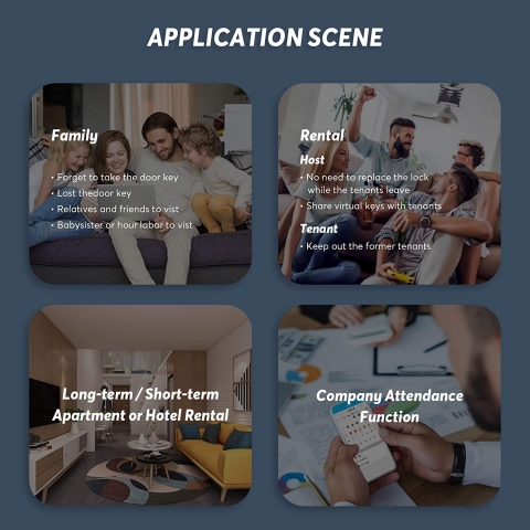 Güvendiğiniz kişilerle paylaşmak için sanal anahtarlar oluşturabilir-bunları kalıcı anahtarlar olarak veya bir programa ayarlayın,Kilitleme/Kilit Açma, başkalarına erişim izni verme ve akıllı kapı kilidini kullanarak herhangi bir yerden kimin gelip gittiğini görebilirsiniz.