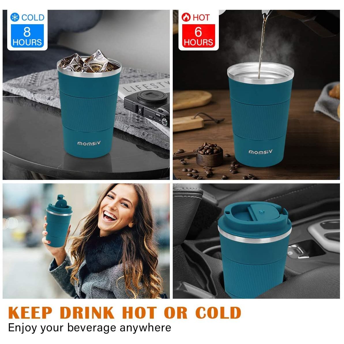 [Kahve Sıcak ve Soğuk Kalır]: Bu kahve kupası, içeceğinizi 6 saate kadar orijinal sıcaklığında tutmak için yüksek kaliteli çift duvarlı paslanmaz çelik yapıya sahiptir. Paslanmaz çelik 304 yapısı, içeceğinizin tuhaf bir koku olmadan uzun süre kalıcı lezzetini sağlar. - [Tek Elle İçmesi Kolay]: Seyahat kahve kupası, tek elle içmeyi çok kolaylaştıran çevre dostu bir kapak açıklığına sahiptir. Ve kapağın yüzeyi ayrıca içmenizi sağlayan bir saman deliği tasarımına sahiptir.