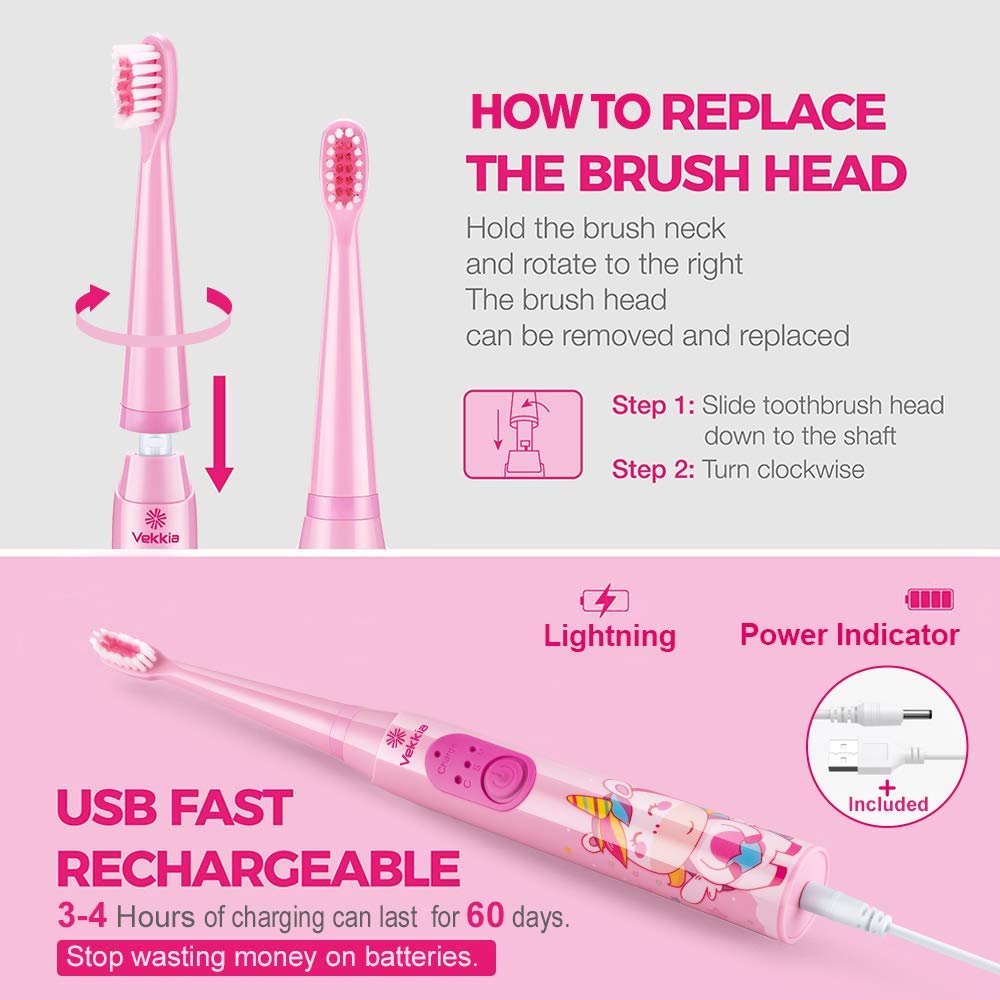 Vekkia Elektirikli Çocuk İçin Diş Fırçası Set (Unicorn)