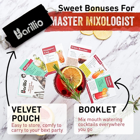 BARILLIO BAKIR BARTENDING KİTİ TÜM İHTİYAÇLARINIZA CEVAP VERİYOR! Lezzetli kokteylleri karışıklık veya karışıklık olmadan karıştırmak için ihtiyacınız olan en temel ev barı aksesuarlarını sağladık: içecek çalkalayıcı, mojito muddler, bar kaşığı, jigger ve 2 likör dökücü - MUHTEŞEM BAKIR AYNA KAPLAMASI Bakır kaplama barmen çalkalayıcı tenekesi kalınlaştırıldığından emin olun. kırılmayacak, bükülmeyecek veya paslanmayacaktır. Barware alet takımınızı ılık, sabunlu suyla elde yıkayarak iyi bir şekilde tedavi edin - ve yıllarca sürecek. -