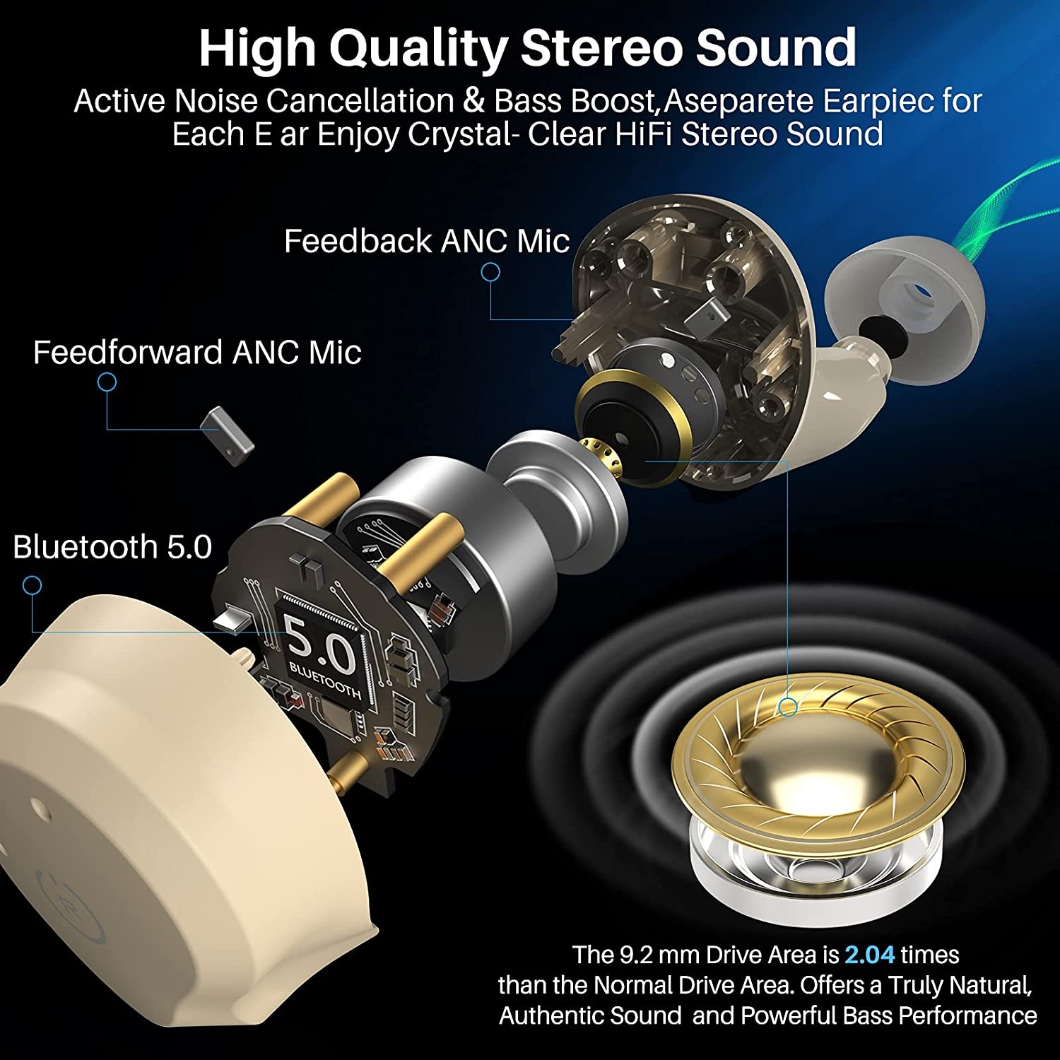 İçe bakan mikrofon, iç sesleri almak için kulak kanalının içini dinler ve sol gürültüyü iki kez iptal etmek için tekrar anti-gürültü üretir.