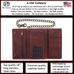 En kaliteli En İyi Tahıllı dana derisi, SÜRPRİZ YOK, HAYAL KIRIKLIK YOK, en iyi işçilikle el yapımı, uzun Ağır Paslanmaz Çelik Zincirle birlikte gelir - Bağımsız Laboratuvar Testleriyle Test Edildi ve Onaylandı. RFID Kredi Kartlarınızı, Banka Kartlarınızı, Kimlik Kartlarınızı elektronik hırsızlara karşı koruyan benzersiz bir RFID Engelleme teknolojisine sahiptir, Hırsızların Kişisel veya hesap bilgilerini elde etmesini önlemeye yönelik koruma - Anahtarlık ve Pençe Kancası dahil 18'.0 Uzun Paslanmaz Çelik Zincir - cüzdan boyut 7,25 x 0,5 x 4,0.