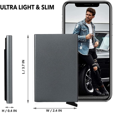Pop up düğme kapatma - Utra İnce İnce Kart Sahibinin Cüzdanı - Birinci sınıf havacılık alüminyumundan ve yüksek Esneklik Cebinden yapılmıştır (fatura, nakit, madeni para, anahtar vb. tutun). yüksek mukavemetli metal gövde, kartları fiziksel hasarlardan korur ve uzun hizmet ömrü sağlar. metal alüminyum kart kasası 5-6 karta kadar (kimlik, banka/kartvizit vb.) tutabilir, aşırı yüklemediğinizden emin olun. Minimalist Boyutlar: U 3,7" x G2,4" x Y 0,3" / inç, Ön cebiniz veya çantanız için mükemmel. - Eşsiz Akıllı Anahtar Tasarımı&Kolay Erişim.