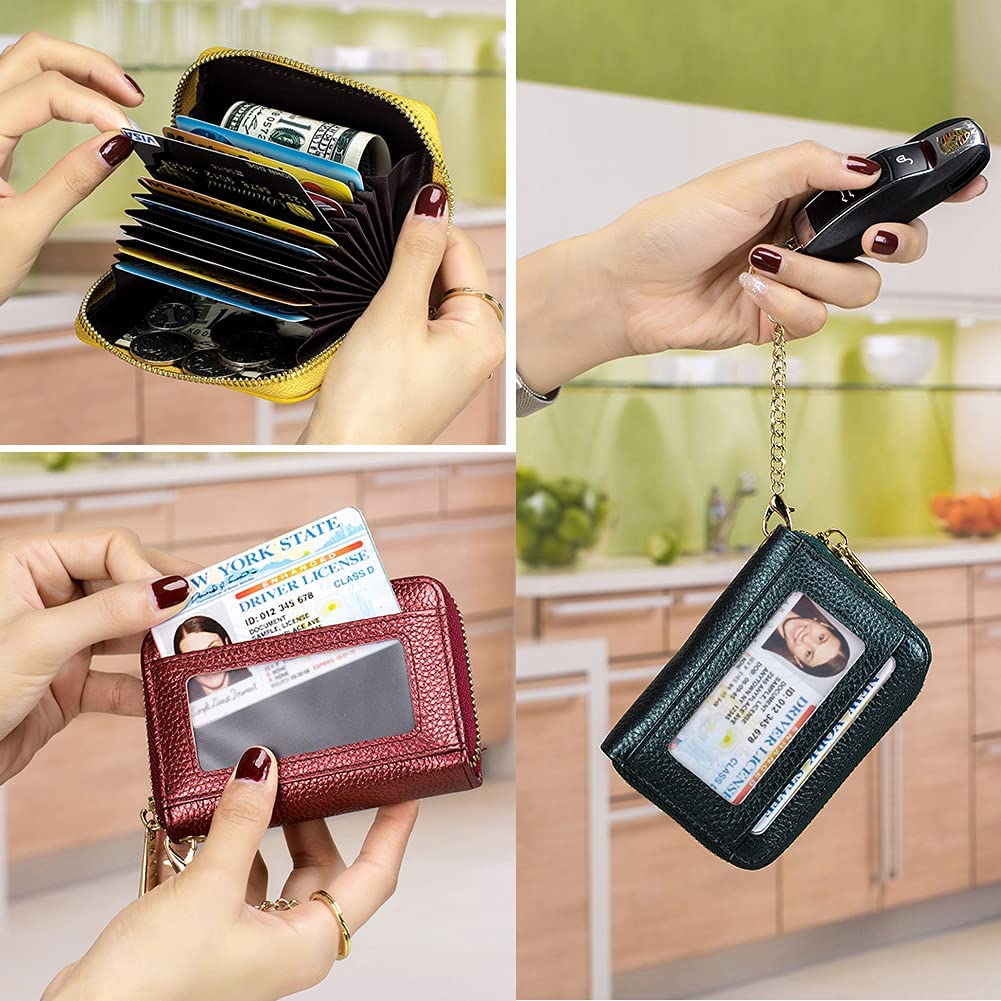 Malzeme: Hakiki Deri Kredi Kartı Cüzdanı. Sığır derisinden yapılmıştır -- Yumuşak, Pürüzsüz ve Dayanıklı. - Kapasite: Kredi kartı, banka kartı, kartvizit, kimlik kartı, anahtar gibi günlük kartlarınızı tutmak için yeterli olan 10 kart yuvası + 2 Nakit bölmesi + 1 kimlik penceresi + anahtarlık. - Boyut: 4.3(U) x 3(G) x 1(Y). Küçük Boy Kartlık Ceplerinize, Çantanıza veya El Çantalarınıza Sığdırmak İçin Mükemmeldir. - Tasarım: Anahtarlık, dış kimlik penceresi ve RFID Engelleme Astarı ile Tasarlanmış Çok Fonksiyonlu Kart Cüzdanı