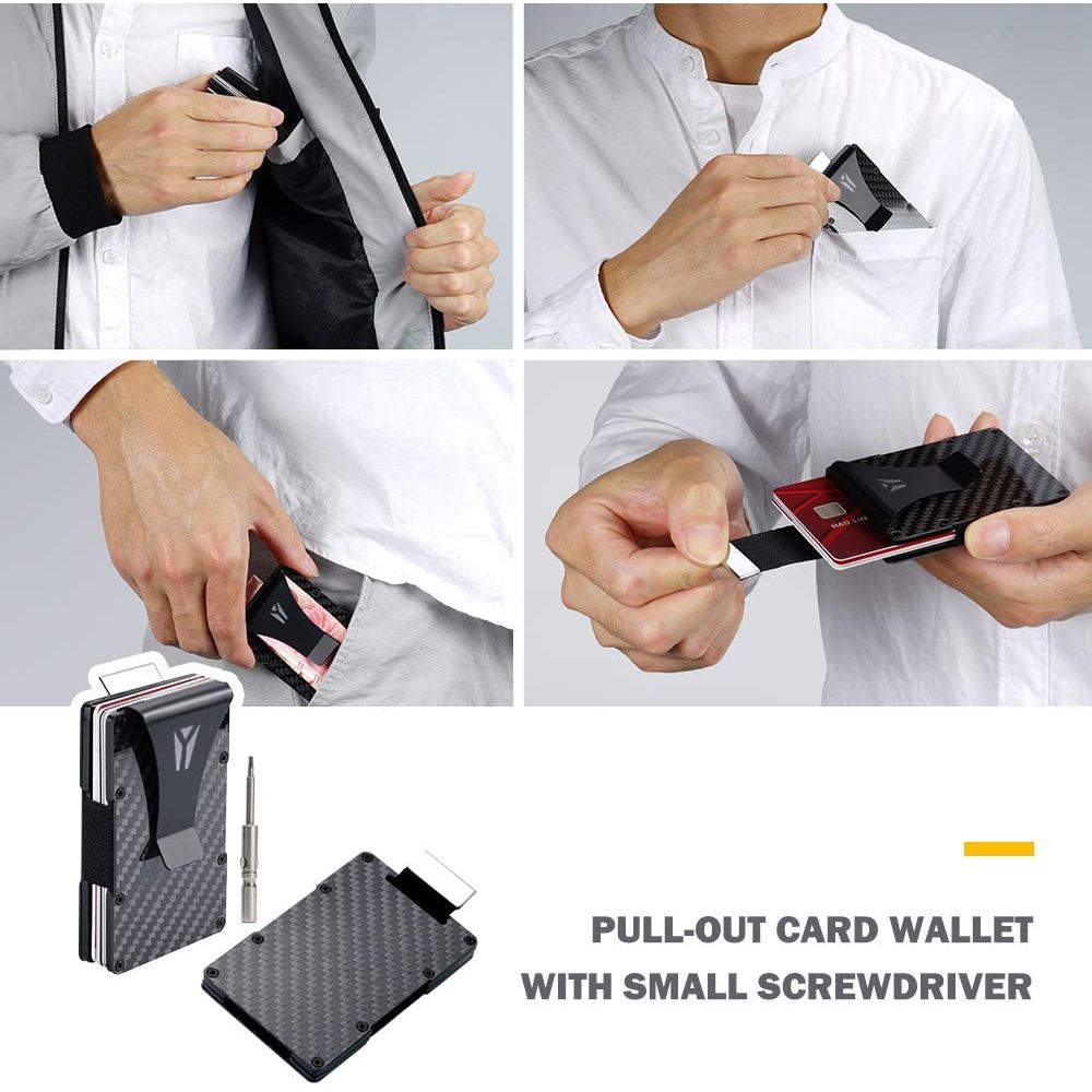 Yüksek Kaliteli Karbon Fiber Malzeme Yeacun Karbon fiber cüzdanlar, RFID'yi engelleyebilen yüksek kaliteli malzemeden yapılmıştır. Karbon örgü efekti iyi bir görünüme sahiptir ve cüzdanınızı daha dayanıklı hale getirir ve ömür boyu sürebilir. Yepyeni ve iyi paketlenmiş, yüzeyde çizik görmeyecek. - Kolay Kullanım için Yeni Çekilir Tasarım Arkadaki çekme tırnağı, kartları bu kart tutucudan çıkarmayı kolaylaştırır. Kartları sık kullanma ihtiyacı duyanlar için uygundur.