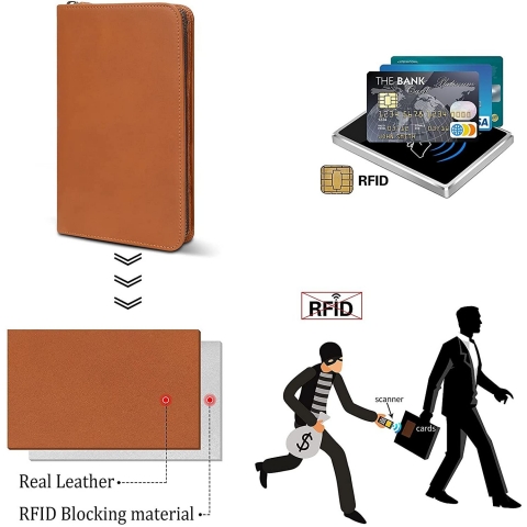 Birinci Sınıf Malzeme - Her cüzdan, YKK metal fermuarlı lüks sırçalı deriden yapılmıştır. Elinizde pürüzsüz, yumuşak ve lüks bir his bırakır. - Boyutlar - 5 L x 8 Y. Ürün ağırlığı: ~0,44 lbs. Projelerinizi elinizin altında tutacak kadar geniş. Bu Deri Seyahat Cüzdanı 4 adete kadar pasaport, kart ve diğer belgeleri tutabilir. - RFID Koruması - Birinci sınıf bir doku ile birlikte, bu RFID engelleme cüzdanları çipli kartları, kişisel ve finansal bilgileri dijital taramalardan korur. -