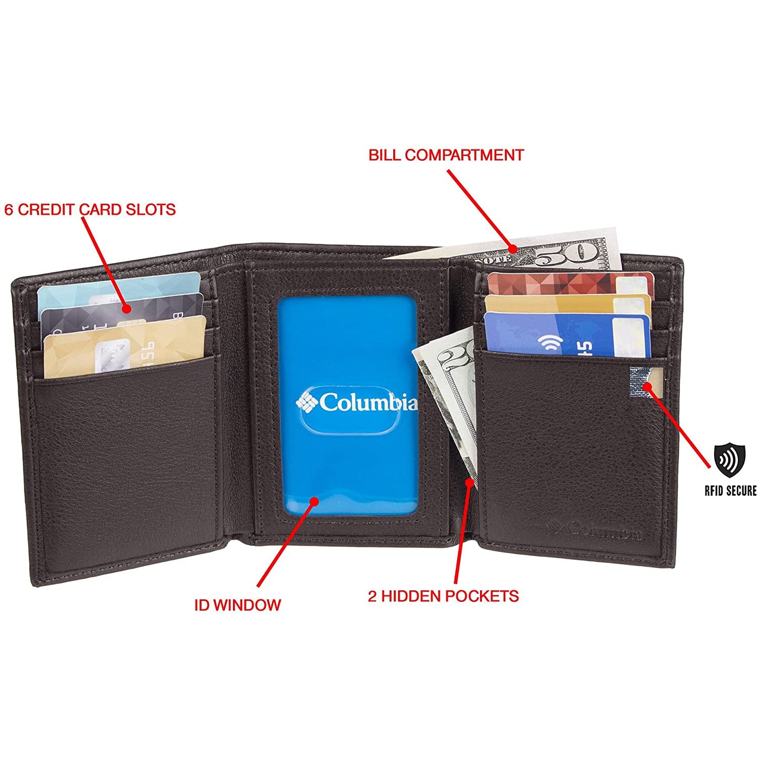%100 Deri - İthal - Polyester astar - Üç katlı kapatma - Sadece Elde Yıkanabilir - DEPOLAMA KAPASİTESİ: Bu üç katlı cüzdan ile ihtiyacınız olan tüm odaya sahip olacaksınız. Banka kartı, nakit, iş rozeti, fotoğraflar, notlar ve daha fazlasını sığdırmak için başparmak ejektörlü net bir kimlik penceresi, bir para cebi, 2 ana cep ve 5 kredi kartı cebi vardır - RFID KORUMASI: Bu teknoloji, dijital hırsızları engeller. kişisel kimlik ve kredi kartı bilgilerinizi çalmak. Columbia cüzdanımız RFID ile geliştirildi