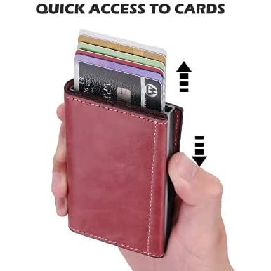 Hakiki deri - RFID astar - Mıknatıslı kapama - KARTLARA HIZLI ULAŞIN: Yandaki düğmeye basın, kartlarınız sırayla dışarı çıkacaktır. Alüminyum kasa 7-8 kredi kartı tutar. 1 kart koyun, kasa da sıkıca tutabilir. Kartların düşmesi konusunda endişelenmeyin. Mıknatıslı tokalar cüzdanınızı daha akıllı hale getirir. - DERİ VE ALÜMİNYUM CÜZDAN: Dış kısım üst düzey hakiki deriden yapılmıştır, yüksek kaliteyi yumuşak dokunuş hissi ile bulacaksınız. Dış kısım değiştirilemez.