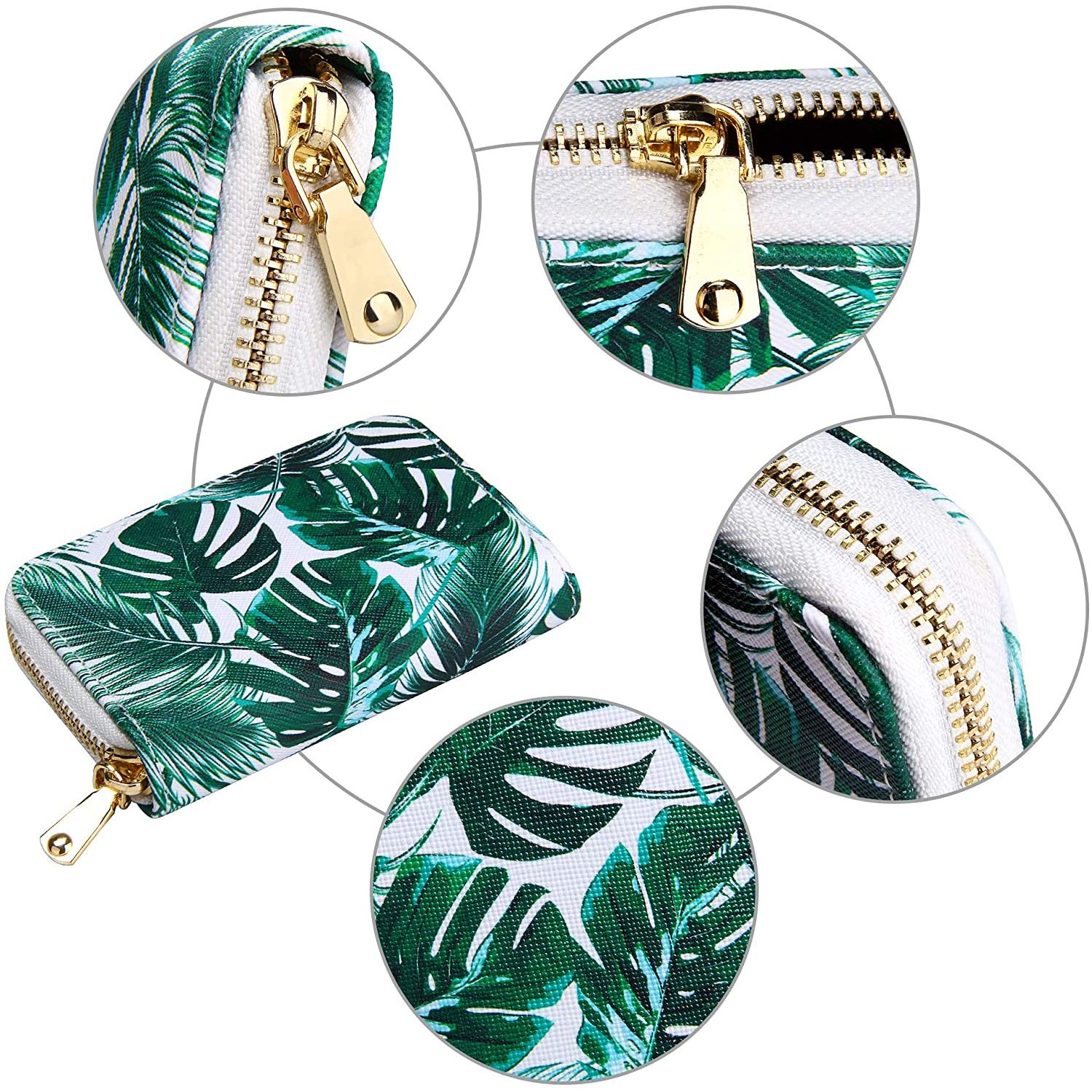 Deri astar - Fermuar kapatma - Premium Malzeme: Küçük baskılı kredi kartı sahibi cüzdanımız, sevimli 3D baskı çapraz desenli En kaliteli, yumuşak ve dayanıklı vegan deriden yapılmıştır. - Boyutlar: Kadınlar için küçük rfid cüzdanlar 4,60" x 3,34" x 1,10"(11,7 cm x 8,5 cm x 2,8 cm); Dahili kart yuvası genişliği: Yaklaşık 3,93"/10 cm. - Büyük Kapasite: Hediye kartı, kimlik kartı, kartvizit, ehliyet, banka kartı için 10 RFID Engelleme kredi kartı yuvası; Nakit, faturalar, makbuzlar ve madeni paralar için 2 bölme.
