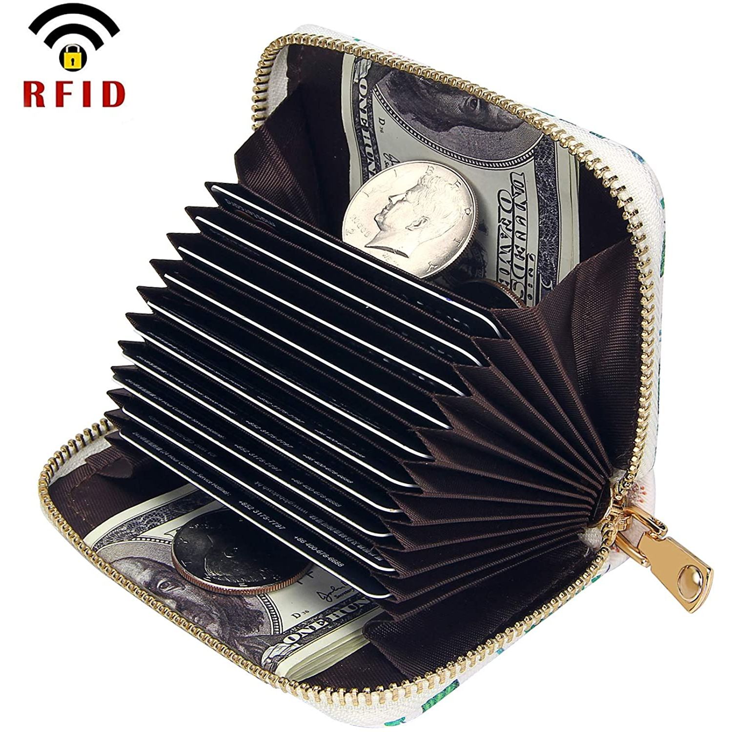Polyester astar - Fermuar kapatma - Premium Malzeme: Küçük baskılı kredi kartı sahibi cüzdanımız, sevimli 3D baskı çapraz desenli En kaliteli, yumuşak ve dayanıklı vegan deriden yapılmıştır. - Boyutlar: Kadınlar için küçük rfid cüzdanlar 4,60" x 3,34" x 1,10"(11,7 cm x 8,5 cm x 2,8 cm); Dahili kart yuvası genişliği: Yaklaşık 3,93"/10 cm. - Büyük Kapasite: Hediye kartı, kimlik kartı, kartvizit, ehliyet, banka kartı için 10 RFID Engelleme kredi kartı yuvası; Nakit, fatura, makbuz ve madeni para için 2 bölme