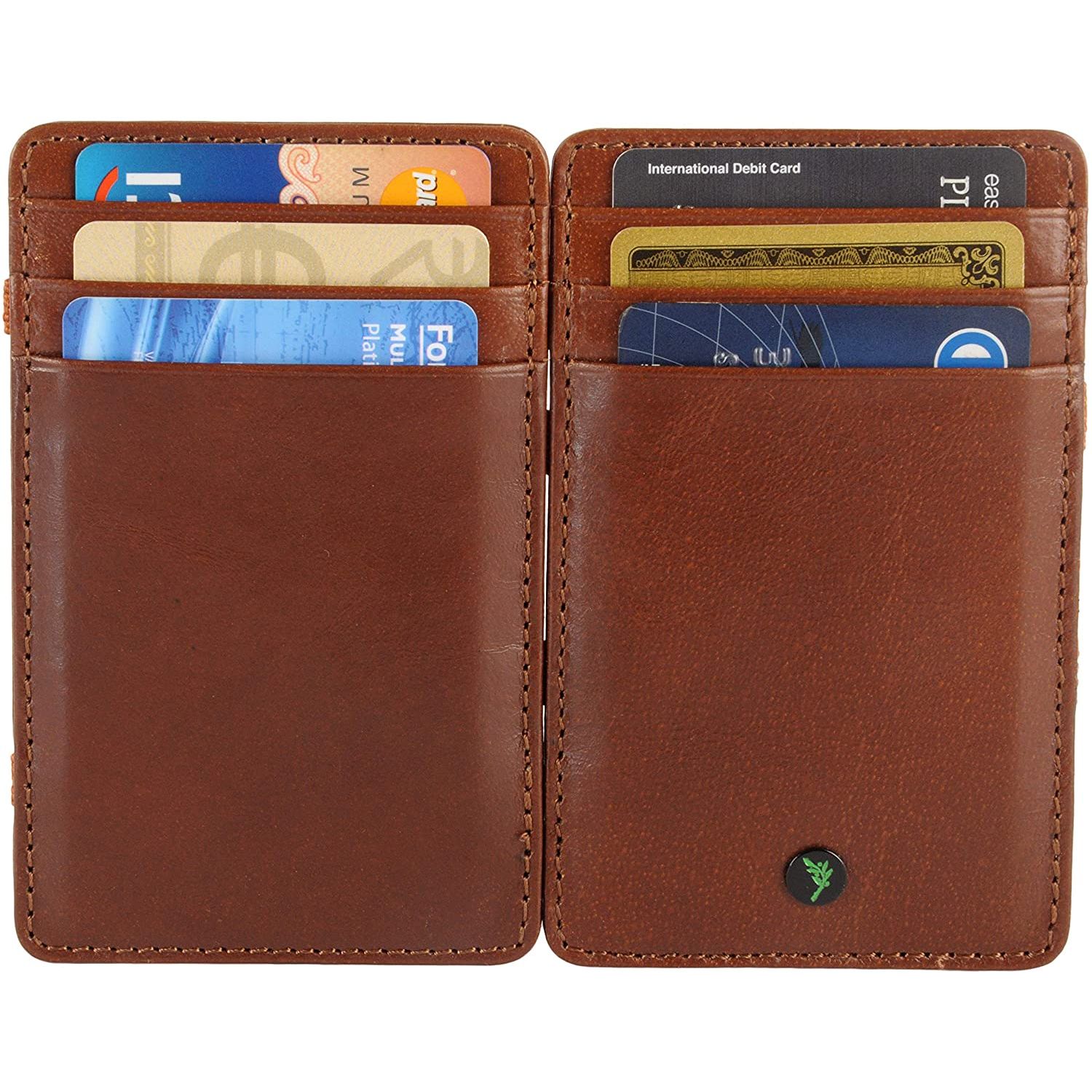 Deri astar - Kapak kapatma - MAGIC TRICK : Magic Cüzdan benzersiz sihirli kapak özelliğine sahiptir. Basitçe açık cüzdana nakit koyun ve kapatın. Deri cüzdanı tekrar açtığınızda, paranız sihirli bir şekilde elastik kayışların arkasına sıkışır. Bu numara, kart cüzdanımızı arkadaşlarınızı da etkileyecek şık bir aksesuar haline getiriyor. Onun için mükemmel bir Sevgililer Günü Hediyesi. - MİNİMALİST : Kart sahibinin toplam 8 kart yuvası vardır. 6 önde 2 içeride. Sabitlemek için güçlü bir elastik kayış vardır.
