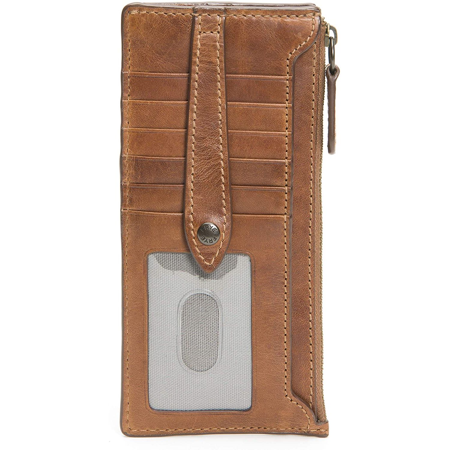 İthal - Antika çekmeli deri - Çıtçıtlı kapatma - 9 kart yuvası, açık kimlik başparmak yuvası, kayar cep, Anahtarlık - Yaklaşık. 3,25" X 7" X 1,4", Yaklaşık ağırlık 0,3 lbs - Kayış tipi: Kayışsız