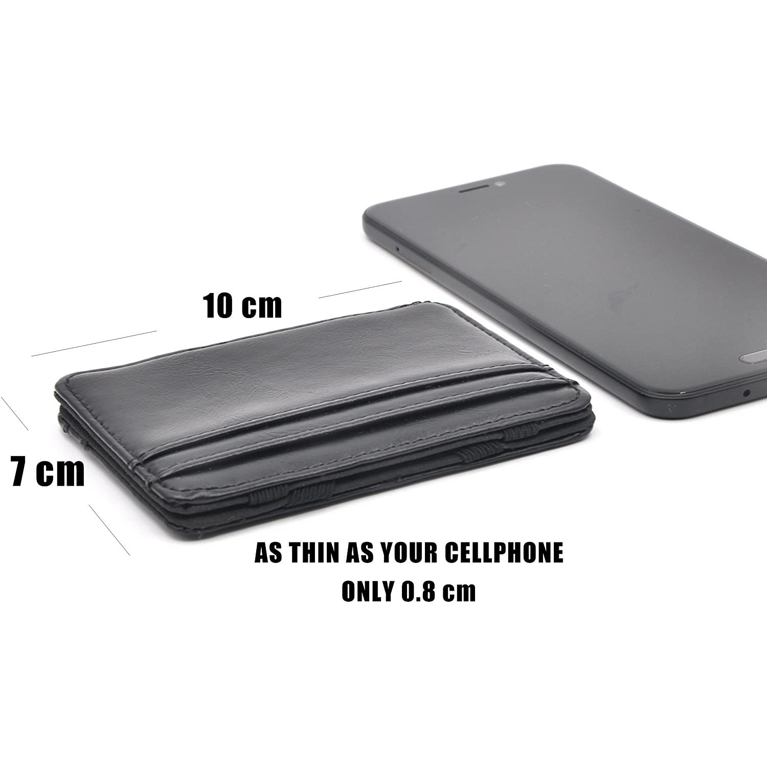 Hakiki Deri İnce Cep Cüzdanı. Diğer büyük deri cüzdanlarla aynı yumuşak dokunuş hissi sağlarken süper incedir. - 8 mm Ultra ince, cep telefonunuz kadar ince (belki ondan daha ince), her cebe kolayca sığar. - 4 Kart Yuvası. İçine kimlik kartınızı, banka kartlarınızı ve biraz nakit koyun, istediğiniz yere gitmekte özgürsünüz. Şişman cüzdanına veda et. - Magic Money Clip paranızı sıkıca tutar. İstediğiniz taraftan açabilirsiniz. Sihirli bir şekilde kolay ve güvenli. - Boyut: 3.9x2.7x0.3 inç / 10x