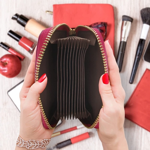 HANJUN RFID Korumalı Kadın Deri Cüzdan (Pembe)