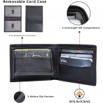 HAKİKİ DERİ En üst birinci katman dana derisinden yapılmıştır. Güzel ve pürüzsüz dokusu, yumuşak ve rahat dokunuşu ile. Deri cüzdan, uzun süre kullanıldıktan sonra daha da iyi görünüyor. - MİNİMALİST VE PRATİK TASARIM 8+ Kartla En İyi Uyar. 4 kart yuvası, 2 kimlik penceresi ve 3 kart yuvası olan 1 çıkarılabilir kart kılıfı, 2 gizli kayma cebi, 2 tam uzunlukta fatura bölmesi içerir. Boyutlar: 4.52"U x 3.66"G x 1.02"Y - RFID BLOKLAMA Gelişmiş RFID SECURE teknolojisi ile donatılmıştır.