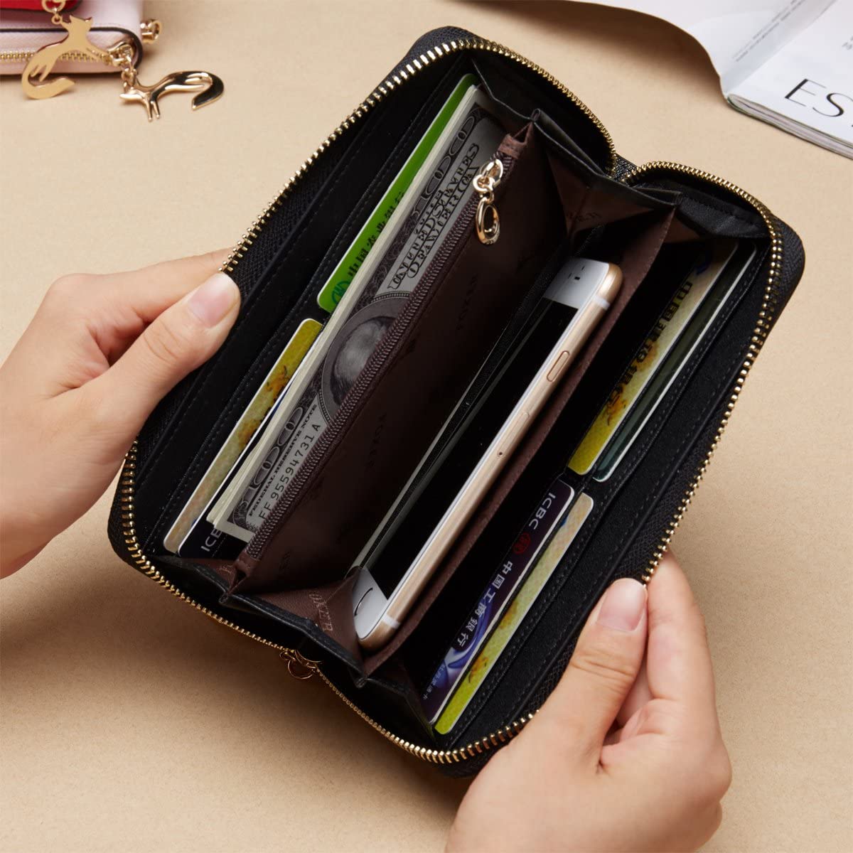 Polyester İpek astar - Çift katlı kapatma - Yüksek KaliteFOXER kadın uzun cüzdanı, saffiano dana derisinden yapılmıştır. Saffiano dana derisi hakiki deriden biridir, dana derisi işlendikten sonra, ustalarımız dana üzerinde çapraz tane oluşturmak için çelik levhayı belirli bir sıcaklıkta kullanır, böylece bir saffiano sığır derisi üretir (Not: Aldığınızda biraz koku olabilir) saffiano deri cüzdan ve koku birkaç gün sonra kaybolur), bu nedenle cüzdanımız sıradan lea'dan daha dayanıklıdır