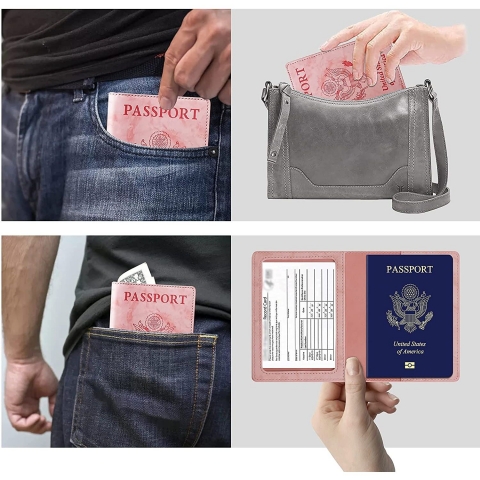 Zekkaome RFID Korumalı Deri Pasaportluk (Pembe)