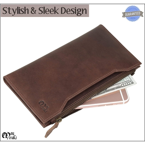 Mou Meraki RFID Korumalı Erkek Deri Cüzdan(Koyu Kahverengi)