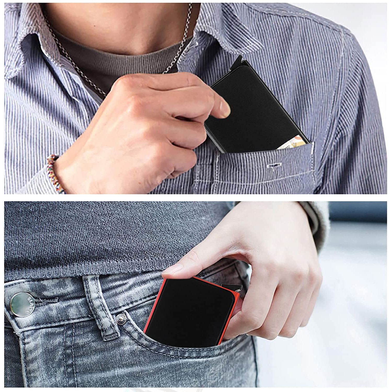Pop up düğme kapatma - Utra İnce İnce Kart Sahibinin Cüzdanı - Birinci sınıf havacılık alüminyumundan ve yüksek Esneklik Cebinden yapılmıştır (fatura, nakit, madeni para, anahtar vb. tutun). yüksek mukavemetli metal gövde, kartları fiziksel hasarlardan korur ve uzun hizmet ömrü sağlar. metal alüminyum kart kasası 5-6 karta kadar (kimlik, banka/kartvizit vb.) tutabilir, aşırı yüklemediğinizden emin olun. Minimalist Boyutlar: U 3,7" x G2,4" x Y 0,3" / inç, Ön cebiniz veya çantanız için mükemmel. - Eşsiz Akıllı Anahtar Tasarımı&Kolay Erişim.
