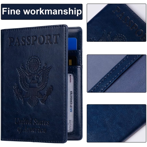 TOOVREN RFID Korumalı Erkek Deri Pasaportluk (Mavi)
