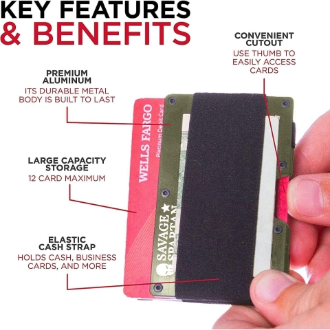 BLOKLAR RFID - Askeri sınıf RFID güvenli teknolojisi, tüm kredi kartlarınızı ve özel bilgilerinizi kablosuz hırsızların tarama cihazlarından korur. - MİNİMAL TASARIM - Uzatmadan 1-12 kimlik ve kart tutacak şekilde genişletilebilir. Bir cüzdan yerine bir bavulu andıran, soluk makbuzlar ve gereksiz kartlarla dolu tipik iki katlı deri cüzdanlara harika bir alternatif. - NAKİT KAYIŞ - Kaymaz, ince ve çok yönlü elastik bir bant içerir. Taşımak için ideal: nakit, ehliyet için.