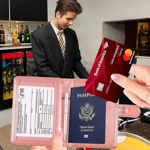 Manyetik Geçmeli Pasaport Kılıfı, Katlanmış Boyut (U x G): 5,6 x 4,2 inç. Aşı Kartı Yuvası Boyutu: 5,2 x 3,5 inç, 4 x 3 inç aşı kartı için uygundur. - CDC Aşı Kartı Koruyucu Malzemeli Pasaport Sahibi: PU deriden yapılmış pasaport kılıfı yumuşak ve kavraması rahat, su geçirmez ve temizlenmesi kolaydır. - Çoklu Kullanım: Yükseltilmiş pasaport kılıfı 9 ceplidir: şeffaf cep aşı kartları için kullanılabilir ve kalan cepler pasaport defteri, kimlik kartı, ehliyet, kredi kartları tutabilir.