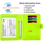 Manyetik Geçmeli Pasaport Kılıfı, Katlanmış Boyut (U x G): 5,6 x 4,2 inç. Aşı Kartı Yuvası Boyutu: 5,2 x 3,5 inç, 4 x 3 inç aşı kartı için uygundur. - CDC Aşı Kartı Koruyucu Malzemeli Pasaport Sahibi: PU deriden yapılmış pasaport kılıfı yumuşak ve kavraması rahat, su geçirmez ve temizlenmesi kolaydır. - Çoklu Kullanım: Yükseltilmiş pasaport kılıfı 9 ceplidir: şeffaf cep aşı kartları için kullanılabilir ve kalan cepler pasaport defteri, kimlik kartı, ehliyet, kredi kartları tutabilir.