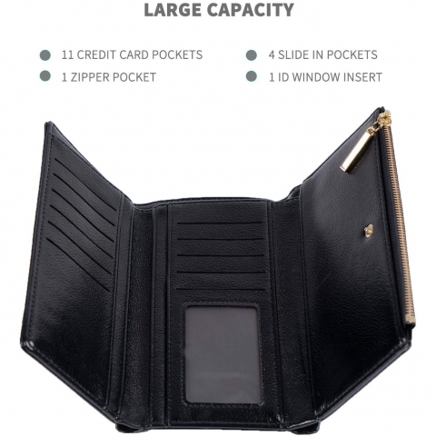 Yüksek kaliteli deriden üretilmiştir, dayanıklı ve uzun ömürlüdür. Düğmeler sıkıca kapatılır, güvenli ve kullanımı kolaydır. - Üç katlı cüzdan birçok şeyi tutabilir ve alan işgalini azaltabilir. Sıkı kart yuvası, kartınızı düşmeye karşı korur. Dış fermuar zarif ve kapalı düğme sıkı. - Cüzdanlarımız benzersiz tasarımı ve mükemmel kalitesi ile sıradan deri cüzdanlardan daha dayanıklıdır ve cüzdanların taşınması kolaydır. - Her yaştan kadın için tasarlanmıştır. Bu çok yönlü, konfor