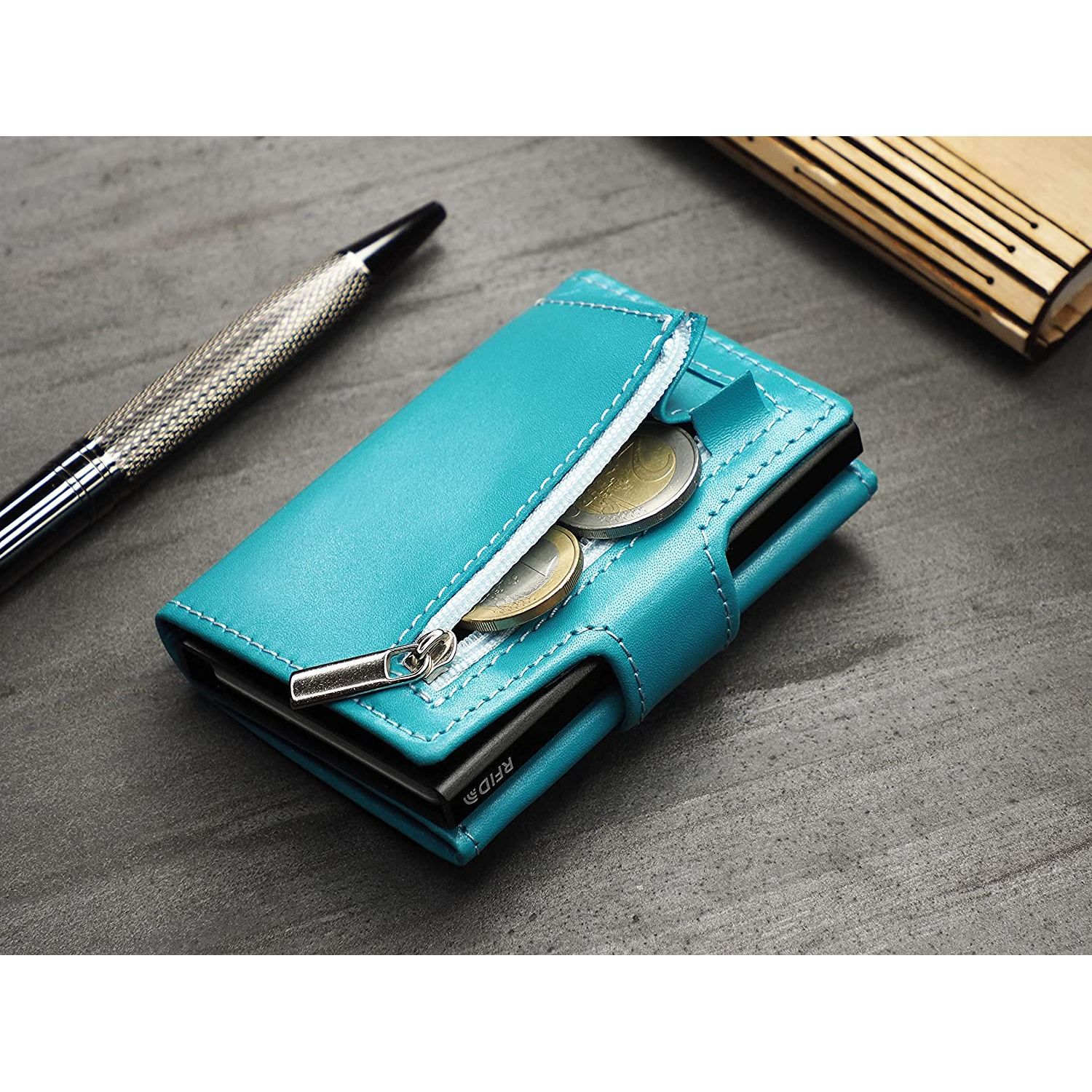 RFID KORUMASI: Yerleşik RFID engelleyici, kredi kartı verilerinizin yetkisiz kişiler ve veri hırsızları tarafından okunmasını etkili ve güvenilir bir şekilde engeller. Bu sizi veri kötüye kullanımına karşı korur. - MALZEME: Sağlam cüzdan İtalyan derisinden özenle elde yapılmıştır. Yüksek kaliteli dikiş ve kenar, basit ve asil tasarımını vurgular - DOĞRU UZAY: Alüminyumdan yapılmış üç iç bölme ve dış torba bölmesi, toplam 9 farklı kart (ID, sürücü belgesi) için alan sunar.