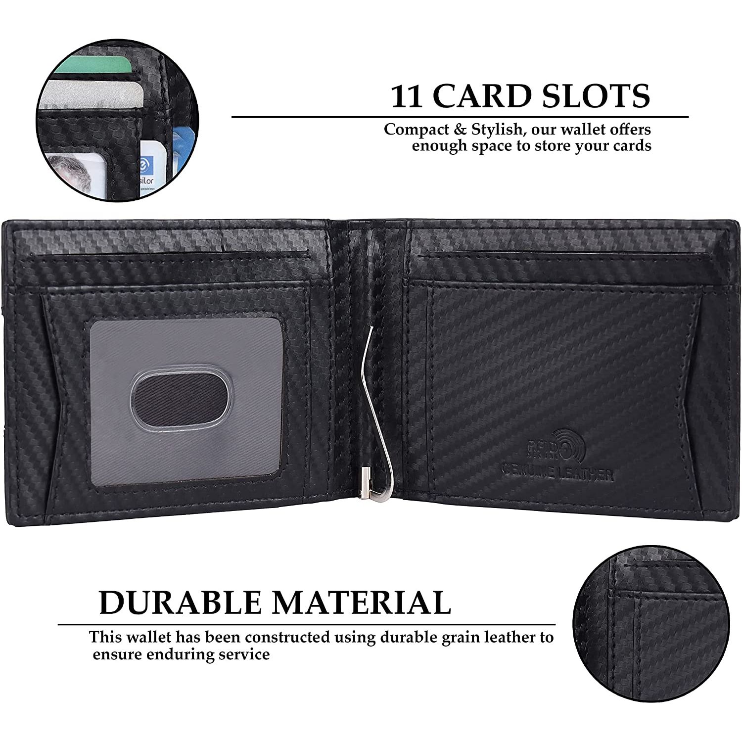 Güvenlik, Gizlilik ve Güvenlik - Cüzdanlarımız, 13.56 MHz veya daha yüksek RFID sinyallerini engellemek ve RFID çiplerinde depolanan değerli bilgileri yetkisiz taramalardan korumak için özel olarak tasarlanmış benzersiz bir metal bileşik olan gelişmiş RFID SECURE Teknolojisi ile donatılmıştır - Slim Down Your Pocket- Made Finest Tam Tahıllı deri ve Üst Tahıllı Deri ile. Tasarlanmış Hızlı Erişim Kimlik Pencereleri, En İyi Uyar 10-12 kart artı toplu olmayan ABD faturaları ve hacmi azaltmak için minimal bir Çekme sekmesi tasarımı.