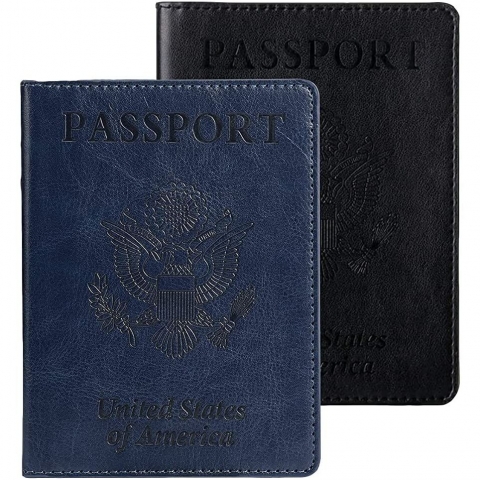 D'lowe RFID Korumalı Erkek Deri Pasaportluk (Siyah/Mavi)(2 Adet)