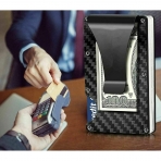 RFID BLOCKINGRFID engelleme koruma tasarımı, özel bilgilerinizi ve kredi kartınızı hırsızların tarama cihazlarından uzak tutun, özel mülk güvenliğinizden emin olun. - İnce, Kompakt ve Taşınabilir Yaylı kenarları ile bu metal cüzdan, 12 karta kadar sığabilir ve geleneksel bir cüzdandan önemli ölçüde daha incedir. (Boyut 8.6cm(U) * 5.5cm(G) * 0.9cm(Y), her türlü cebinize kolayca sığar). - ZARİF VE ŞIKSeçilmiş karbon fiber, rafine ve pürüzsüz.