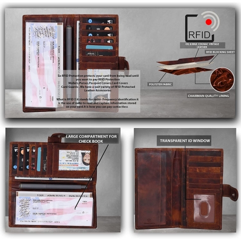 Deri astar - Hindistan'da üretilmiştir - RFID BLOKLAMA ile çek defteri kapakları - Kadınlar için olan bu çek defteri kapakları, RFID BLOKLAMA Koruyucu teknolojisine sahiptir. RFID'li çek defteri kapağı, değerli kişisel verilerinizi tamamen kaplar ve korur. - Deri çek defteri kapağı işlevi ve Boyut: LEVOGUE çek defteri kapakları 7.00 inç x 3.75 inç boyutundadır. Çek defteri kapağı açık olup, istenirse ilmek ile kapatılabilir. Çek defteri, 1 Senet Bölmesi, 1 kimlik kartı, 1 kalemlik, 5 kredi yer bulunur.