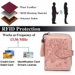 StructureWomens küçük cüzdanlar 4 kart yuvası, 1 kimlik penceresi/fotoğraf yuvası, 1 tam boy para yuvası, 2 katlanmış nakit cebi, 2 bozuk para yuvası içerir. Kartlar, nakit para, kimlikler, makbuzlar, biletler, madeni paralar ve diğer küçük eşyalar için geniş. - Malzeme tasarımı Yüksek kaliteli PU Deriden yapılmış, yüzeyinde kabartmalı orkideler bulunan, yumuşak ve rahat dokunuşlu, kadınlar için küçük deri cüzdan. Zarif ve pratik