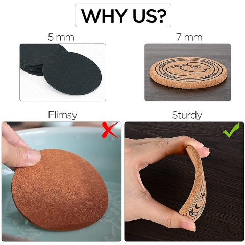 Dekoratif Bardak Altlıkları Dayanıklı Yükseltme: İçecekler için mantar altlıklarımız, yalıtım katmanını kalınlaştırdı, 0,7 cm'ye yükseltildi, artık çatlaması kolay değil, daha güçlü olacak ve stil de optimize edildi. Bu bardak altlıkları kaymaz bir özelliğe sahiptir, içeceğiniz ister soğuk ister sıcak olsun, yanlışlıkla dökülmesinden endişe etmenize gerek yok. Yüksek düzeyde emici özelliği de masanızı kuru ve düzenli tutabilir. - Mükemmel Su