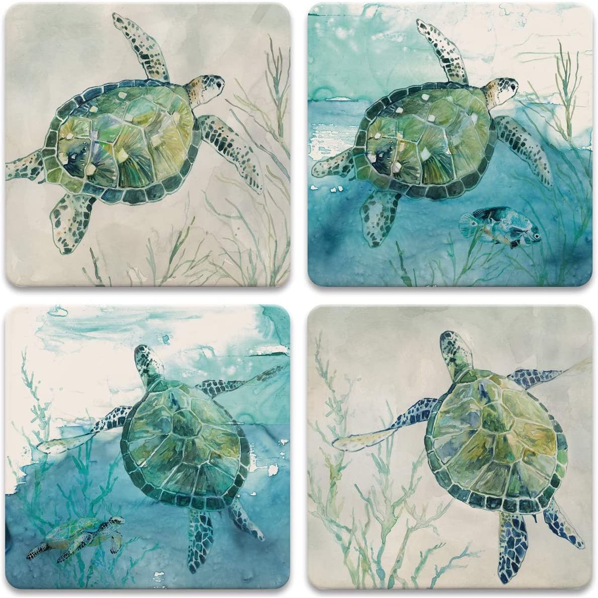 CoasterStone Seramik Bardak Altlığı (Kaplumbağa Desenli, 4 Adet)