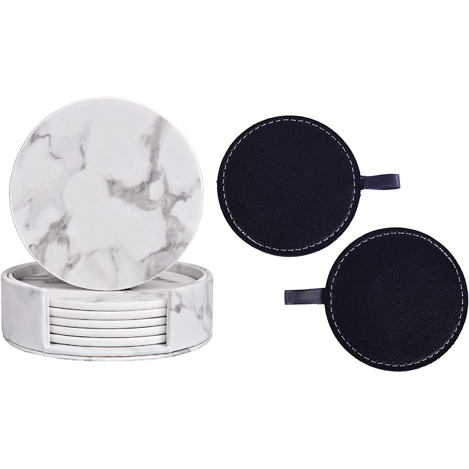 WAYIFON Deri Bardak Altlığı(Beyaz,Siyah, 8 Adet)