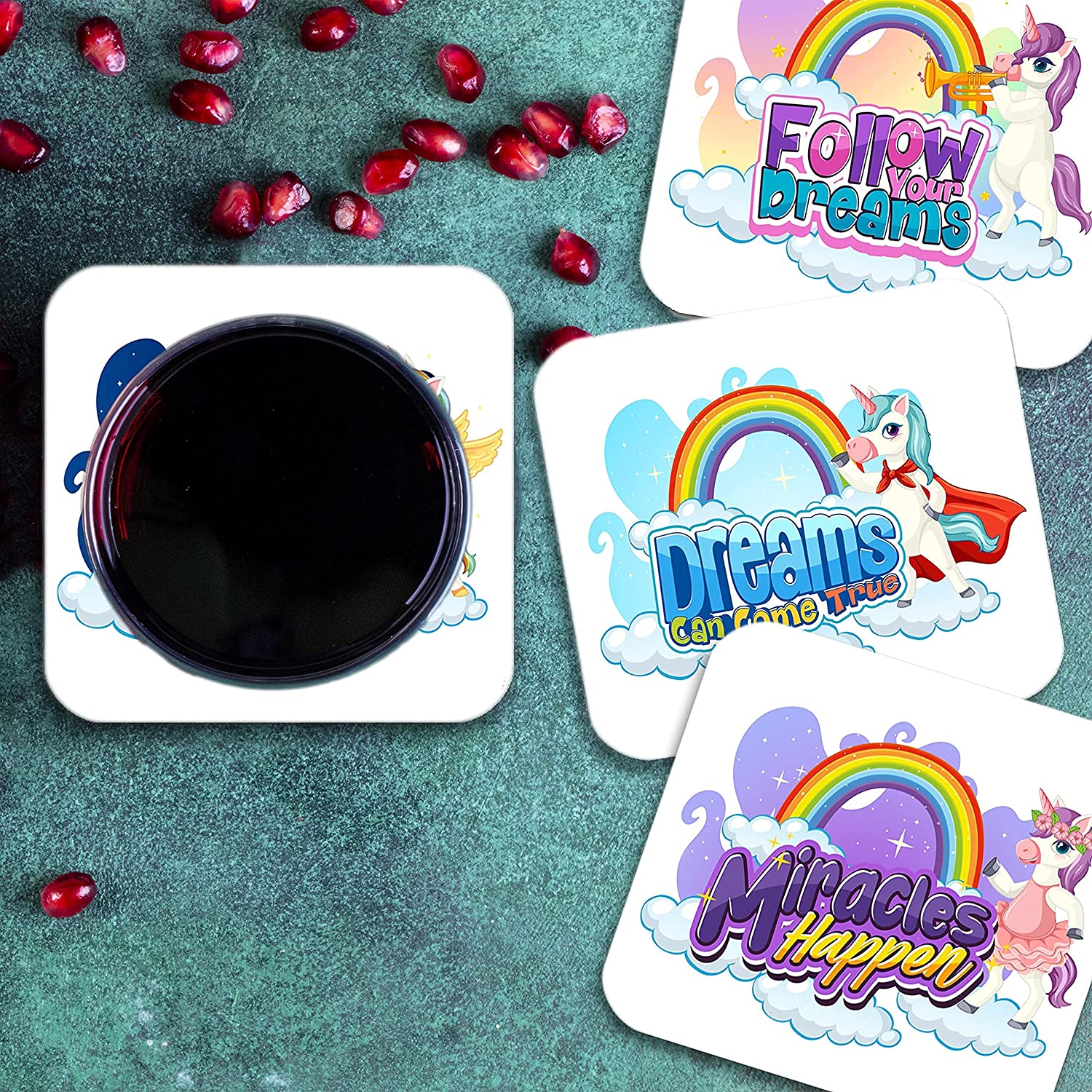 EĞLENCE VE FONKSİYONEL: Soğuk veya sıcak içecekler için tek boynuzlu at bardak altlığı olarak 4 benzersiz bardak altlığı kullanılabilir; Kare bardak altlıkları dayanıklı, esnek neoprenden yapılmıştır ve çoğu içecek boyutuna uygundur; Daha fazla eğlence için karıştırın ve eşleştirin - KAYMA, ÇİZİK, LEKE VEYA YAPIŞMA YOK: Kaymaz arka kısım içecek altlıklarınızı yerinde tutarken yumuşak ve hafif neopren malzeme çizilmeleri önler; Bardaklara yapışmayan suya dayanıklı ve emici bardak altlıkları - HIZLI VE KOLAY TEMİZLİK: