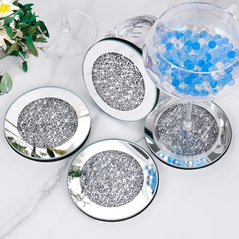 4'lü Yuvarlak Bardak Altlığı Bu aynalı bardak altlığı seti, ışıkların veya mum ışığının aydınlatması altında güzel ışığı kıracaktır. Ezilmiş elmaslar, şeffaf cam pencerenin altına işlenmiştir, zarif ve parıltılıdır. Kenarlar pahlı ve cilalı, pürüzsüz ve güvenli. - Uygun Boyut Bu elmas bardak altlıkları, çoğu bardak, kupa, şarap kadehi ve şişe için uygun bir boyut olan 4 x 4 inç olacak şekilde tasarlanmıştır. Ve temizlemesi kolaydır, altlığı temiz bir bezle silmeniz yeterlidir. -
