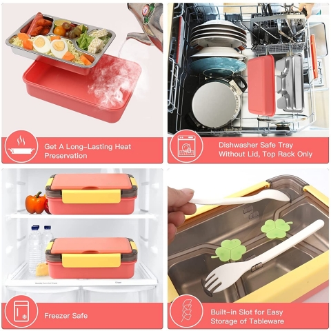 GÜVENLİ VE DAYANIKLI: 304 paslanmaz çelikten yapılmış ALVBELLS paslanmaz çelik yemek kabı, dünyayı plastik atıklarla kirlenmekten koruyabilen güvenli ve sürdürülebilir bir plastik ikame maddesidir. Yetişkin/çocuk bento kutusu paslanmaz çelik kullanarak, yiyeceklere sızan zararlı katkı maddeleri konusunda asla endişelenmenize gerek yok. Ayrıca, paslanmaz çelik bento yemek kabı, BPA içermeyen gıda sınıfı ve pas önleyici malzemeleri ile bir ömür boyu yeni olan yetişkin/çocuk yemek kabı kapları kadar mükemmeldir. -