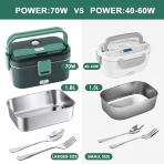 70W Güç, Hızlı IsıtmaElektrikli ısıtma öğle yemeği kutumuz 40W'dan 70W'a yükseltildi, böylece ısıtma süresini büyük ölçüde kısalttı. Bu geliştirilmiş sürüm, ısıtma hızını eski sürümden 3 kat daha hızlı olacak şekilde artırır. - 220V/110V/24V/12V - 3'ü 1 Arada Kullanım: Andmenow elektrikli yemek kabı 2 farklı şarj kablosu sunar: ev kullanımı için 220/110V, otomobiller için 12V ve kamyonlar için 24V. Bu, arabalarda, kamyonlarda, ofiste ve şantiyelerde vb. sıcak ve sağlıklı ev yapımı yemeklerinizin tadını çıkarmanızı sağlar. - 7.5 Bardak/1.