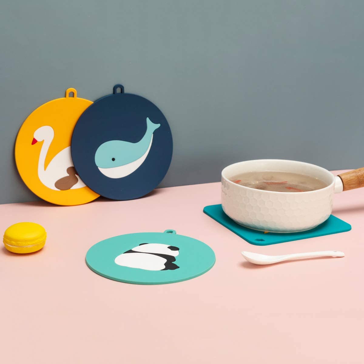Güvenlik Malzemesi ve Dayanıklı - Evde, ofiste veya seyahatinizde kolayca kullanmak için 3 adet bardak altlığı ve 3 adet tencere altlığı dahil olmak üzere toplam 6 adet komik bardak altlığı. Bardak altlığı setleri, yeniden kullanılabilir, dayanıklı ve yaşlanma direnci olan çevre dostu yumuşak silikondan yapılmıştır; 3D kabartmalı yüzey, bardak altlıklarının ıslandığında önden masaya veya cama yapışmamasını sağlar - İdeal Boyut ve Koruyucu - Fincan altlığı 3,34"x3,34", tencere altlığı (yuvarlak tip) 5,9"x5,9" boyutlarındadır, 3 mm ekstra kalınlaştırılmış malzeme ısıya dayanıklıdır.