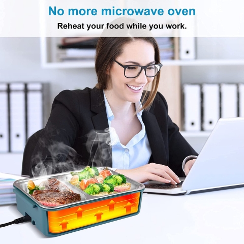 Hızlı Isıtma Hızı En son teknolojiyi (PTC orijinal dahili sabit sıcaklıkta ısıtma) benimser, aşırı ısınma hasarını etkili bir şekilde önler ve kullanımı daha güvenlidir. Güncellenmiş çift ısı koruma fonksiyonu ile yeni elektrikli öğle yemeği kutusunun ısıtma hızı eski modelden daha hızlıdır (sadece 20 dakika sürer). - Büyük Kapasiteli Bölünmüş Astar Yiyeceklerin karışmasını önlemek ve orijinal taze tadı korumak için bölmeli astar (2 bölme) ile donatılmış yiyecek ısıtıcısı öğle yemeği kutusu. 1.5L büyük kapasitelidir.