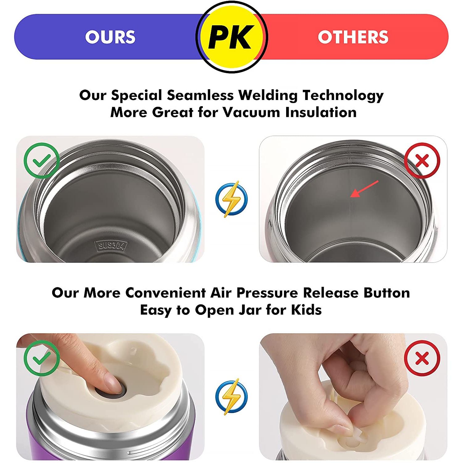 - Sıcak / Soğuk Gıdalar için Güvenli Gıda Sınıfı Çocuk Termosu Çocuklar için bu gıda termosunun gövdesi mükemmel 304 paslanmaz çelikten yapılmıştır , BPA içermez, PVC içermez. Termos mamanın üst kısmındaki iç kapak ve servis kasesi olarak dış kapak çocuklar için güvenli gıda sınıfı plastikten yapılmıştır. Ayrıca 304 paslanmaz çelik katlanır kaşık dahil. Yemek için pembe, siyah, camgöbeği mavi 3 renkli sevimli termoslar mevcuttur - Birçok Düşünceli Tasarım Ekstra geniş ağızlı, yemesi kolay, yiyecekleri sıcak yemek termoslarına doldurması kolay ve 360 ​​sızdırmaz çorba termosu kullanıldıktan sonra temiz Tutma yeri olan çocuk termosu, taşıması kolay Gıda sınıfı malzeme dış kapak kaseye servis edilebilir Altta kaymaz mat İç kapakta uygun bir dengeli basınçlı egzoz düğmesi vardır, çocukların kolayca açmasına yardımcı olur Güzel görünüm, resim en dış duvardaki parıldayan tasarımı gösteremez, gerçek ürün resimlerden daha güzel - Yiyecekleri Uzun Süre Sıcak ve Soğuk Tutun Önemli İpuçları: Yiyecekleri paketlemeden önce bu yalıtımlı öğle yemeği kaplarını önceden ısıtmak ve önceden soğutmak için lütfen kaynar ve soğuk suya dökün. Sıvıyı 12 saatten fazla sıcak ve soğuk tutar, paket değişebilir.