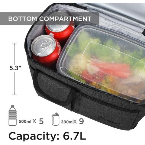 SIZDIRMAZ İÇ - Bento kutunuzdaki çorba veya et suyundan öğle yemeği çantasından sızıp masayı dağıtmaktan daha kötü bir şey yoktur. Isı kaynaklı dikişli iç kısım, Tirrinia öğle yemeği çantasını sızdırmaz ve temizlemesi kolay hale getirir. - ÇİFT KATLI TASARIM - Çift katlı tasarım, yiyeceklerinizi düzenlemenizi kolaylaştırır. Alt katmanda yemek hazırlığı bento kapları veya sandviçler saklayabilirsiniz, üst katman meyve veya içecekleri saklamak için daha uygundur.