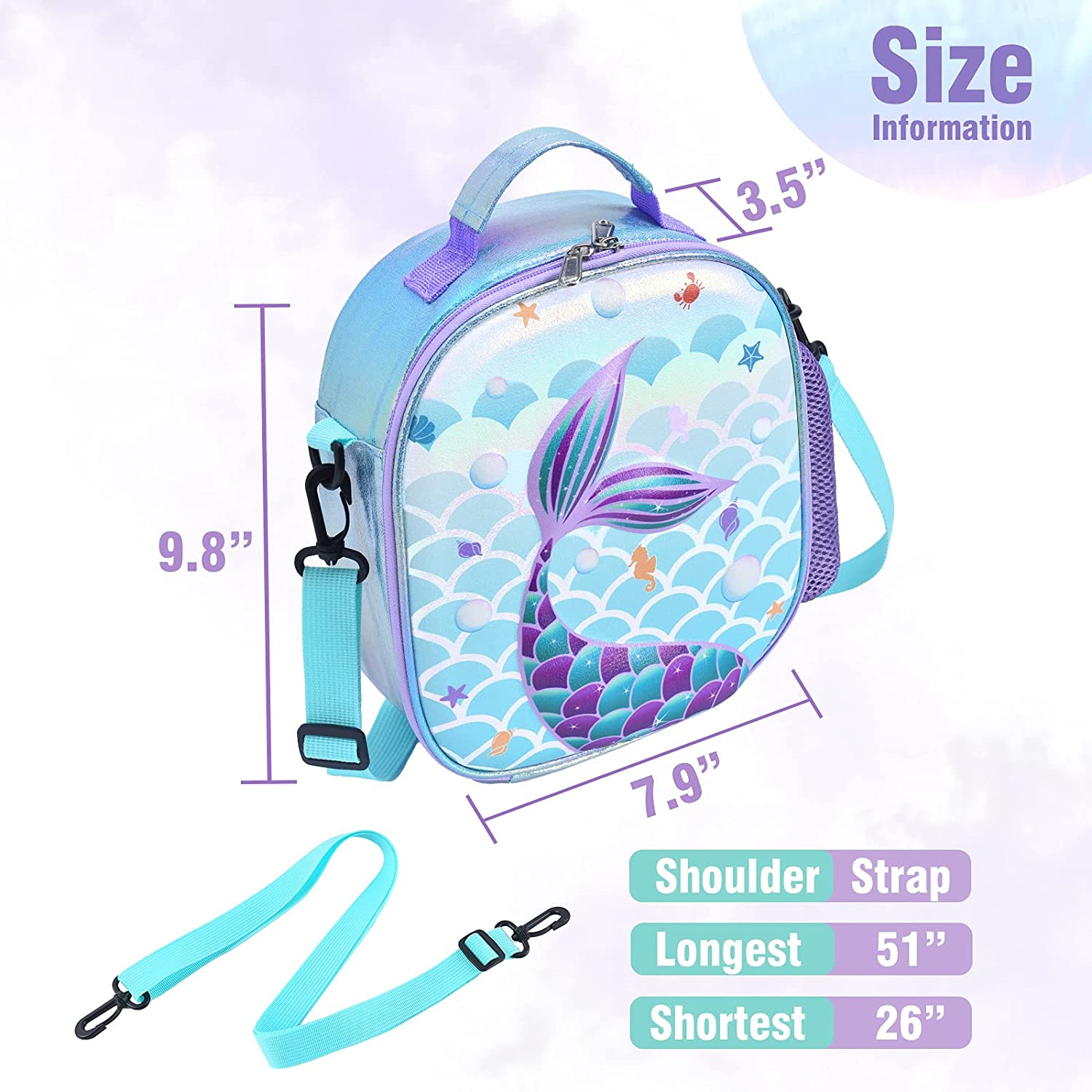 - Parlak Deniz Kızı - Narin deniz kızı öğle yemeği çantası güneş ışığının altında parıldıyor. Özel 3D tasarımı, sıradan olana karşı öne çıkmasını sağlar. Küçük prensesiniz için ne güzel bir hediye. - - Malzeme - Toksik olmayan polyester ve EVA'dan yapılmıştır. BPA içermez, yalıtımlı, su geçirmez, dayanıklı ve yıkanabilir. Kirlenirken sadece ıslak bir bezle silin. Bento kutularınızı, su şişelerinizi, meyvelerinizi ve atıştırmalıklarınızı koymak için uygun bir boyuttur.