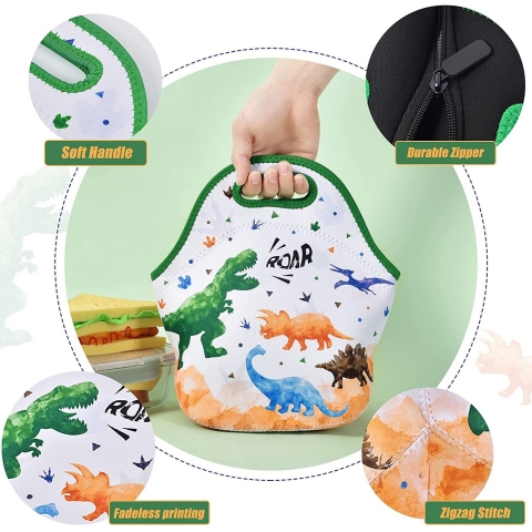 - ROAR - Küçük Dino hayranları bu suluboya dinozor öğle yemeği Çantasını kaçıramaz! Triceratops, Tyrannosaurus, Pterosaur, Stegosaurus ve Brachiosaurus dahil. Eşsiz tasarım, çocuklarınızın öğle yemeğini daha ilginç hale getirir. - - MALZEME - Neopren'den yapılmıştır, toksik değildir ve %100 güvenlidir. Yalıtımlı, su geçirmez, dayanıklı, hafif, BPA içermez ve PVC içermez. İyi süneklik nedeniyle çok küçük katlanabilir. - - YALITIM - Öğle yemeği taşıma çantamız, yiyeceklerinizi duruma bağlı olarak 2 ila 4 saat boyunca güzelce sıcak veya soğuk tutar.